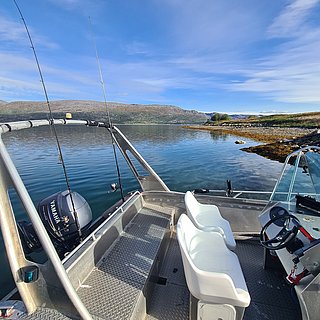 Das Gebiet um den Kvænangsfjord bietet eine sehr abwechslungsreiches Angeln. Mit dem bekannten Sørstraumen, einer der zweit stärkste Gezeitenströme in Norwegen und den Lille Straumen der nur 5 Minuten vom Haus entfernt ist sind die Chancen auf den Heilbutt hier sehr gut. Aber auch das Fischen auf Dorsch, Steinbeißer , Rotbarsch, Seelachs und Plattfisch ist hier sehr gut. Durch die gute geographische Lage haben Sie hier keine Ausfalltage durch Wind, auch die Sommermonate bieten ein stabiles Wetter und wenig Regen in der Region Was aber noch spannender sein kann, sind die guten Angelbedingungen für Lachs und Meerforelle in der nahegelegenen Kvænangselva und natürlich im Fjord direkt vor der Hütte.